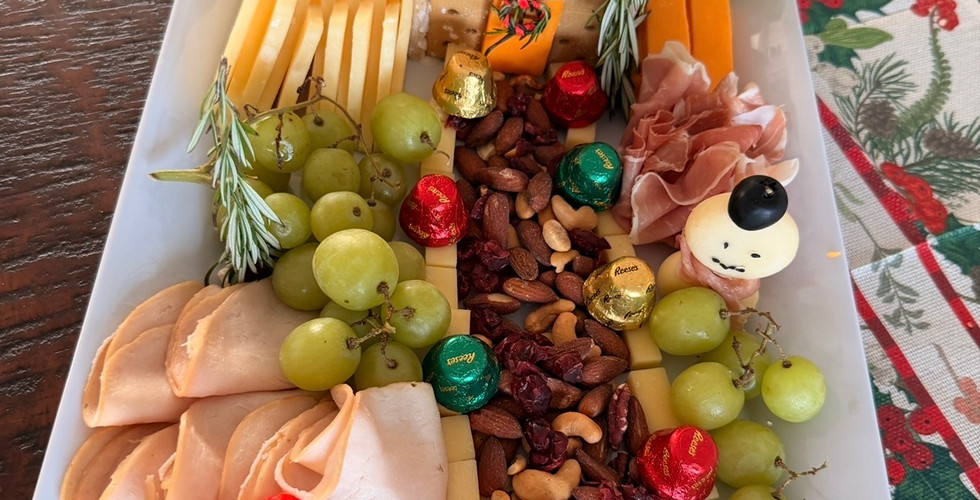 Olives, cherry tomatoes, cornichons, grapes or nuts for accents